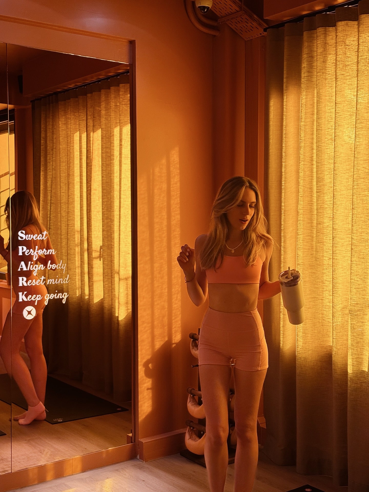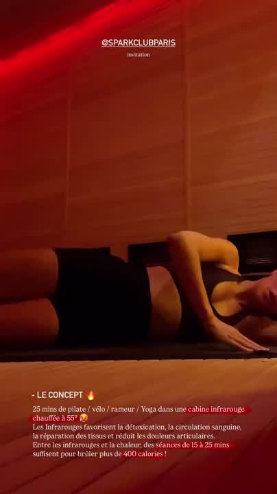 Une salle de sport pas comme les autres qui offre des cours de yoga, pilâtes, vélo ou rameur. Ces cours sont dirigés par des professeurs sur des écrans placés dans des superbes cabines/sauna en bois sous infra rouge. Il y a une multitude de créneaux et ça très appréciable :) La déco dans les tons crème et terracotta est cosy et pensée dans les moindres détails. L’accueil est top!